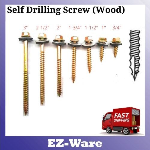 (10Pcs) [Wood] Hex Head Self Drilling Roof and Awning Screw for Wood Skru Atap