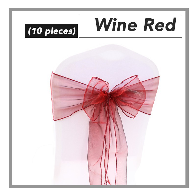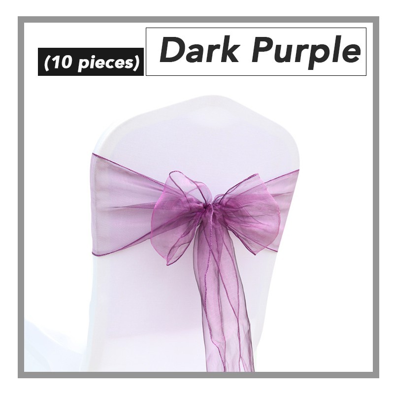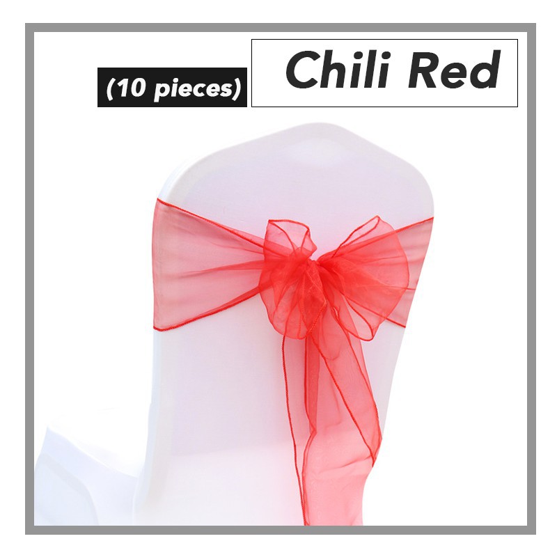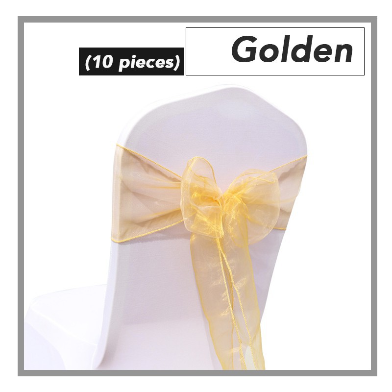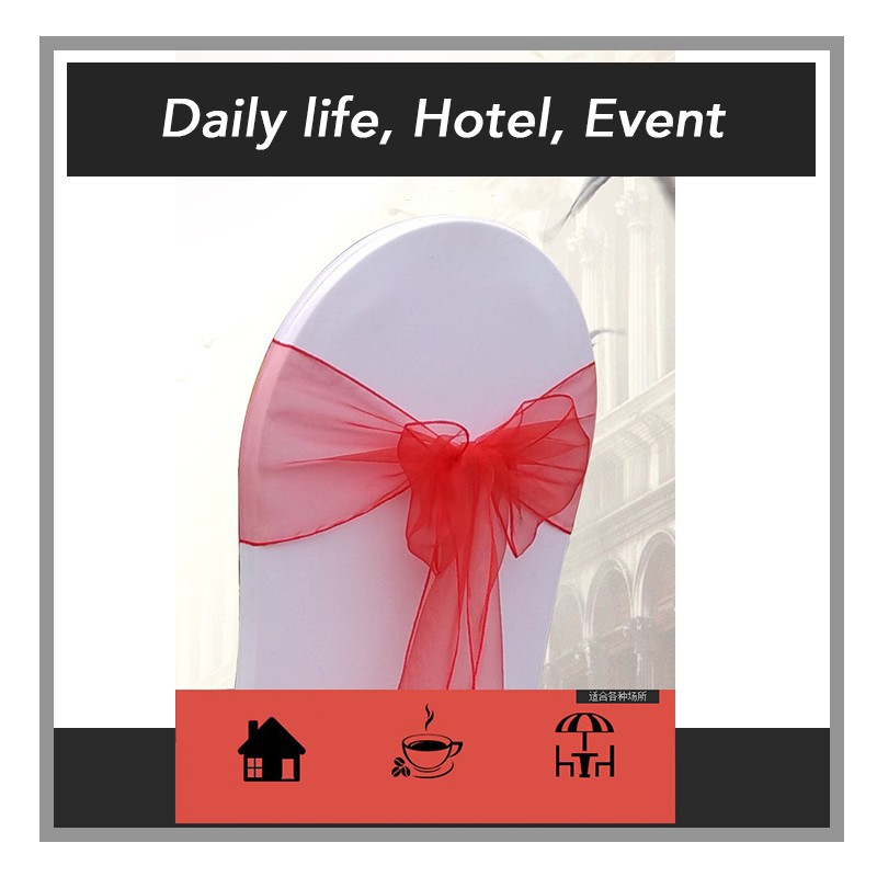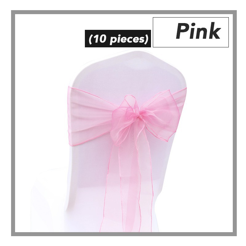 (10pcs) Elegant Organza Chair Back Ribbon Deco Banquet Wedding Hotel Riben Bunga Sarung Kerusi Ready Stock