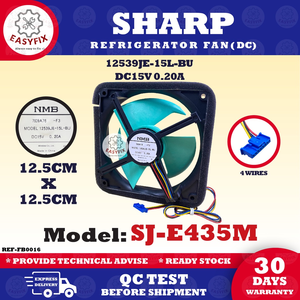 (12.5CM) SJ-E435M SHARP REFRIGERATOR FAN 12539JE-15L-BU DC15V 0.20A