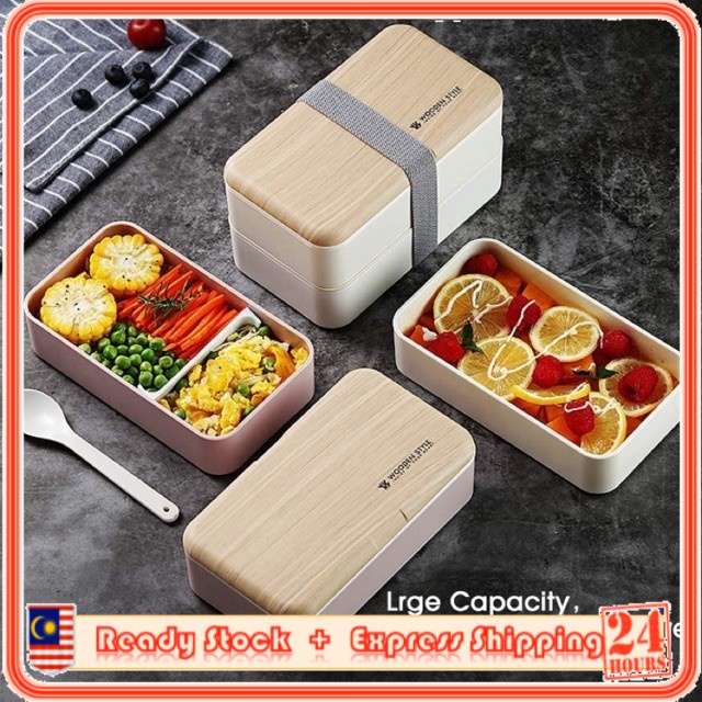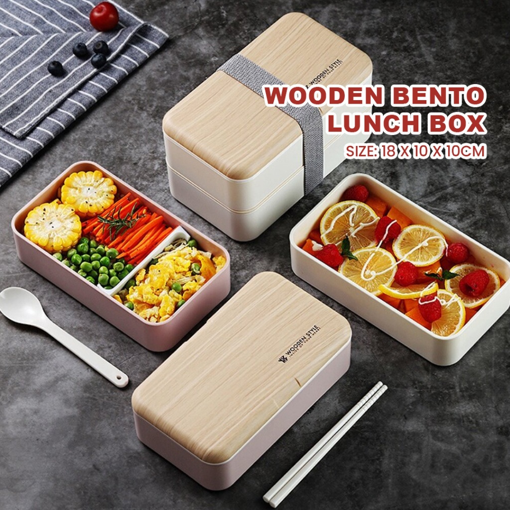 (1200ml) MILANDO Japanese Bento Wooden Lunch Box Student Picnic Food Storage Container Bekal Makanan 饭盒 (Type 2)