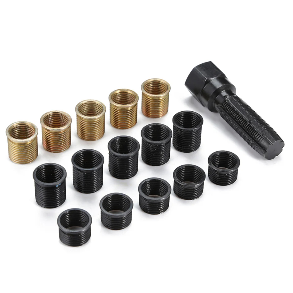 (16pcs) M14 X 1.25 Spark Plug Re-thread Repair Tool Tap Reamer Inserts Kit 14mm For Spark Plug Thread Repair Kits
