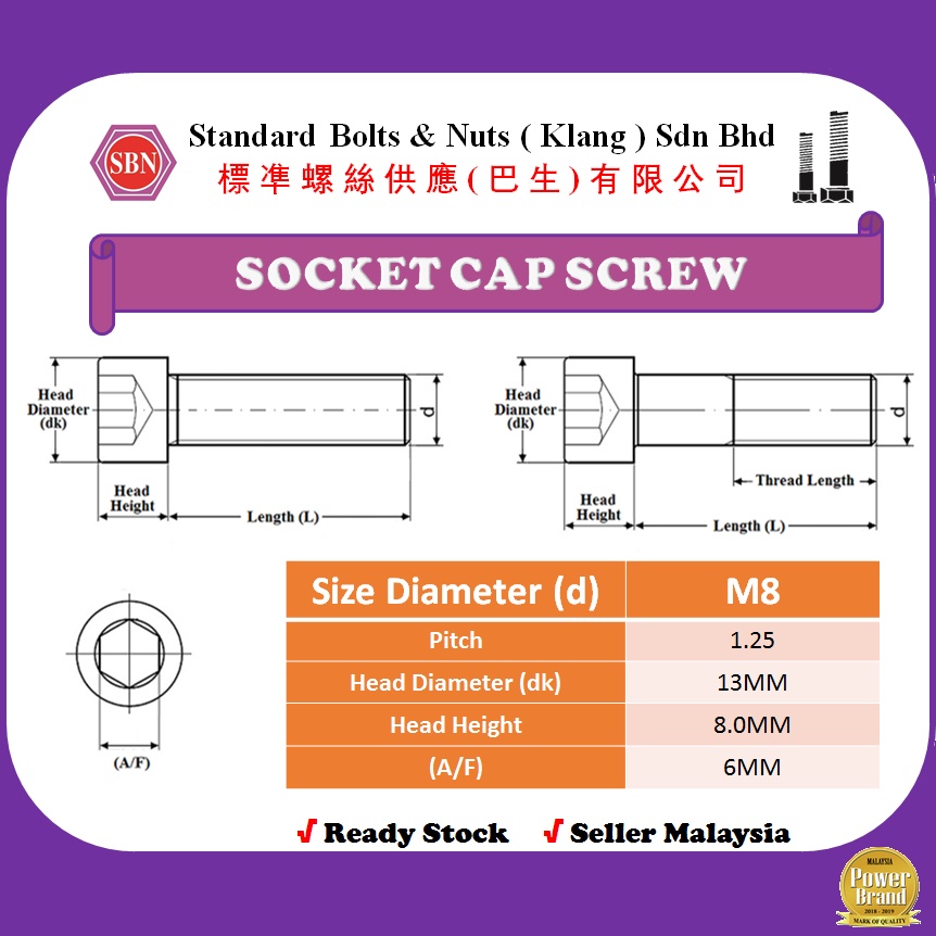 (1PC) [ SIZE: M4 M5 M6 M8 M10] [LENGTH: 100MM TO 150MM] STAINLESS STEEL 304 Allen Key Socket Cap Screw / Elenkey Skru