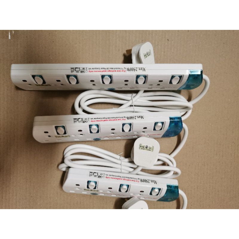 (1PC)Trailing Socket with surge protector 2meter cable (2500w) /sirim approved / surge protector / Extension socket