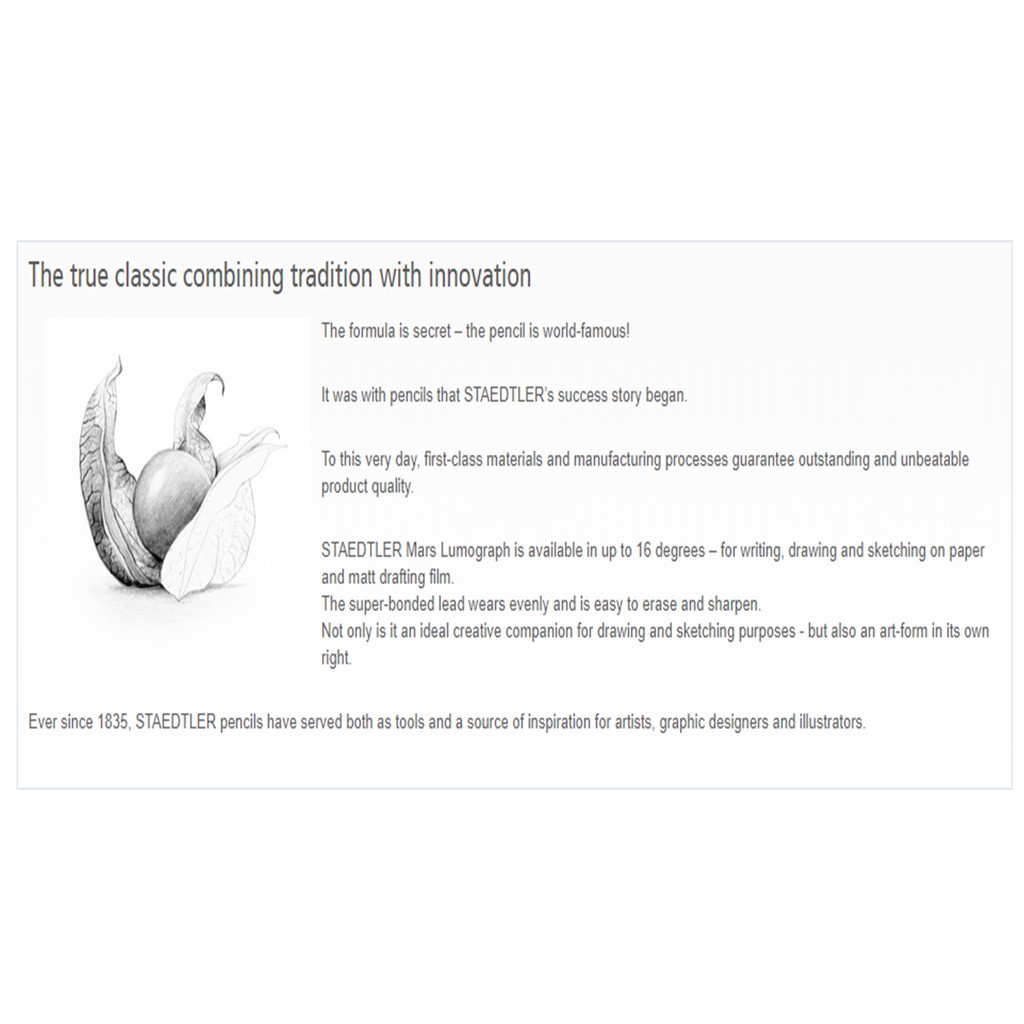 (1PCS) Staedtler Mars Lumograph Pencil 100 8B 7B 6B 5B 4B 3B 2B B HB H 2H 3H 4H 5H 6H