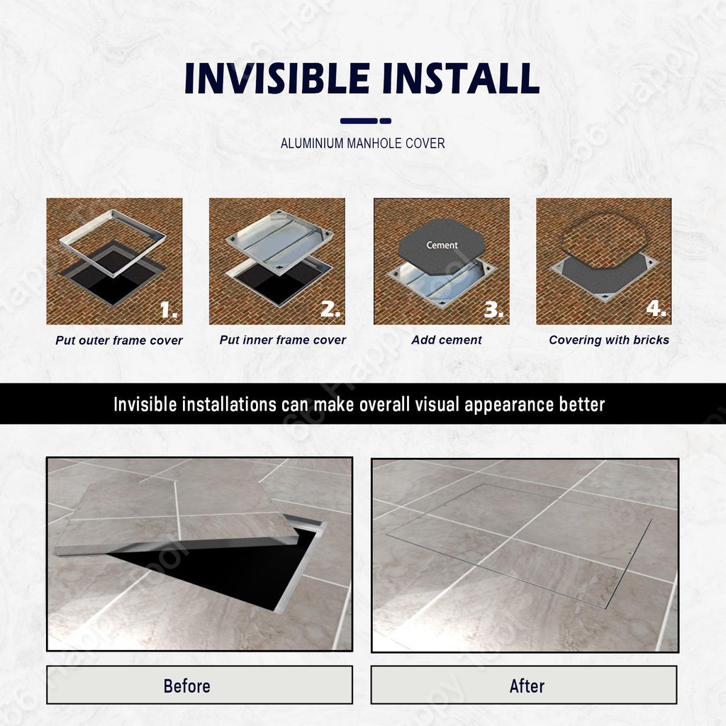 (1pc) 12"x12" 18"x24" Aluminum Manhole Cover Mosaic Cover Frame Penutup Mosek Tile Work Main Hole Tile Flooring