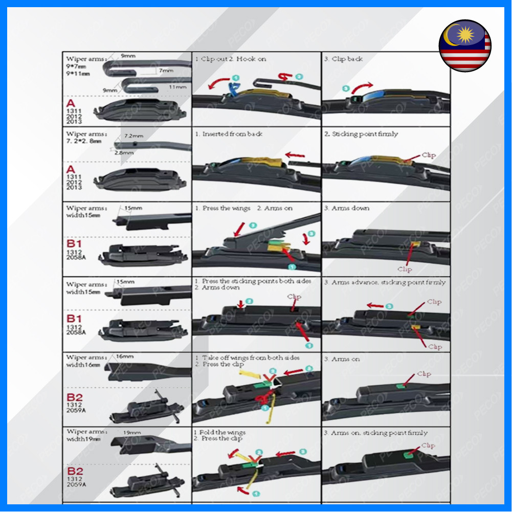 (1pc) MTS S700 Car Multi Adapters Flat Wiper Blade ( Adapter Clip Type A, B1, B2, B3, B4, B5, B6, B7 )