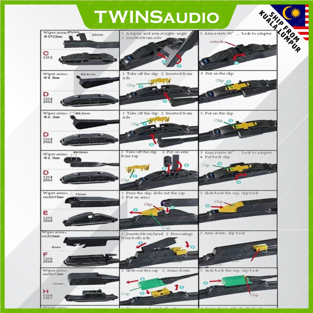 (1pc) MTS S700 Multi Adapters Flat Wiper Blade ( Adapter Clip Type B8, B9, B10, B11, B12, B13, B14 )