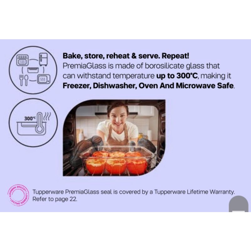 (1pcs) -1L / 1.5L Tupperware Rectangular PremiaGlass Oven Microwave Safe Leakproof Airtight