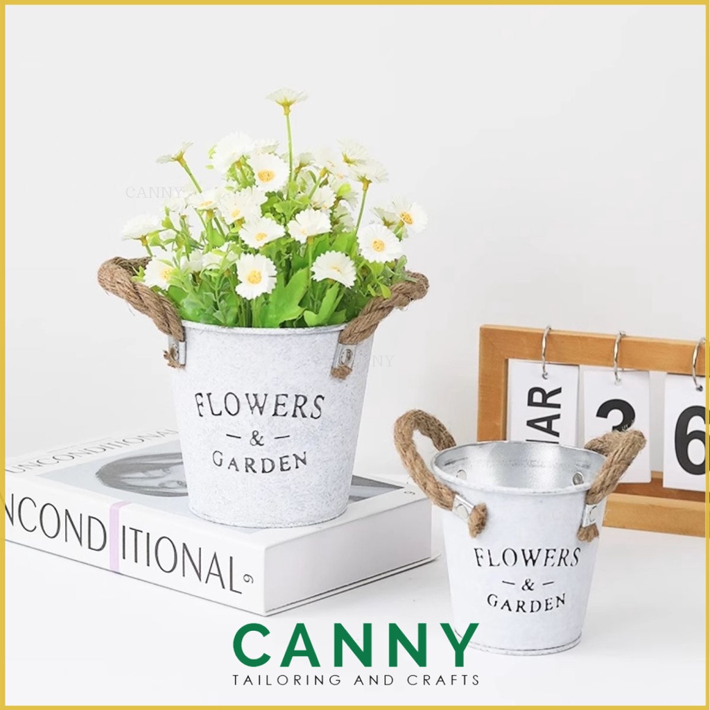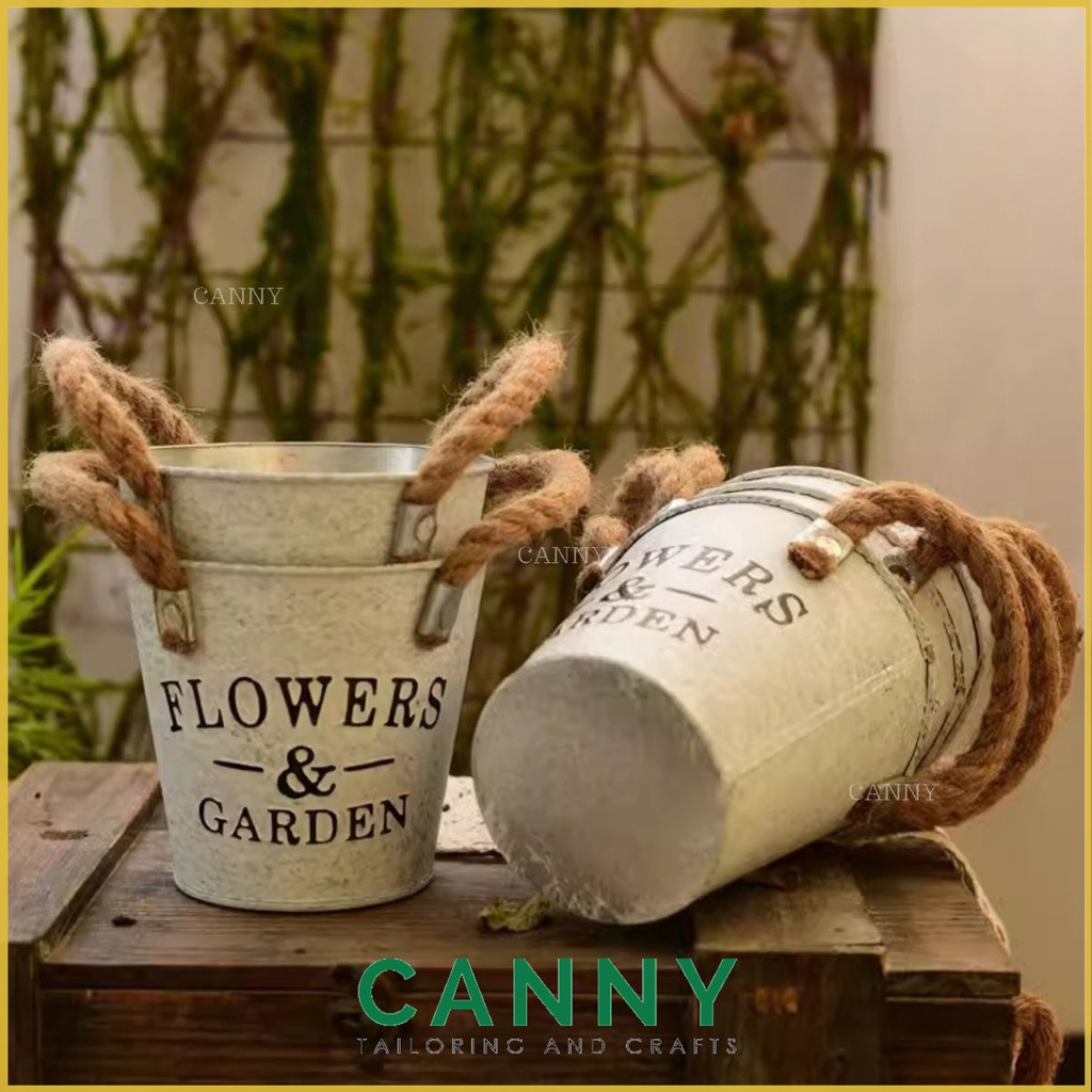 (1pcs) Metal Flower Pot / Vintage Galvanised Metal Flower Pot Garden Hanging / Flower Pot With Handle / Metal Bucket