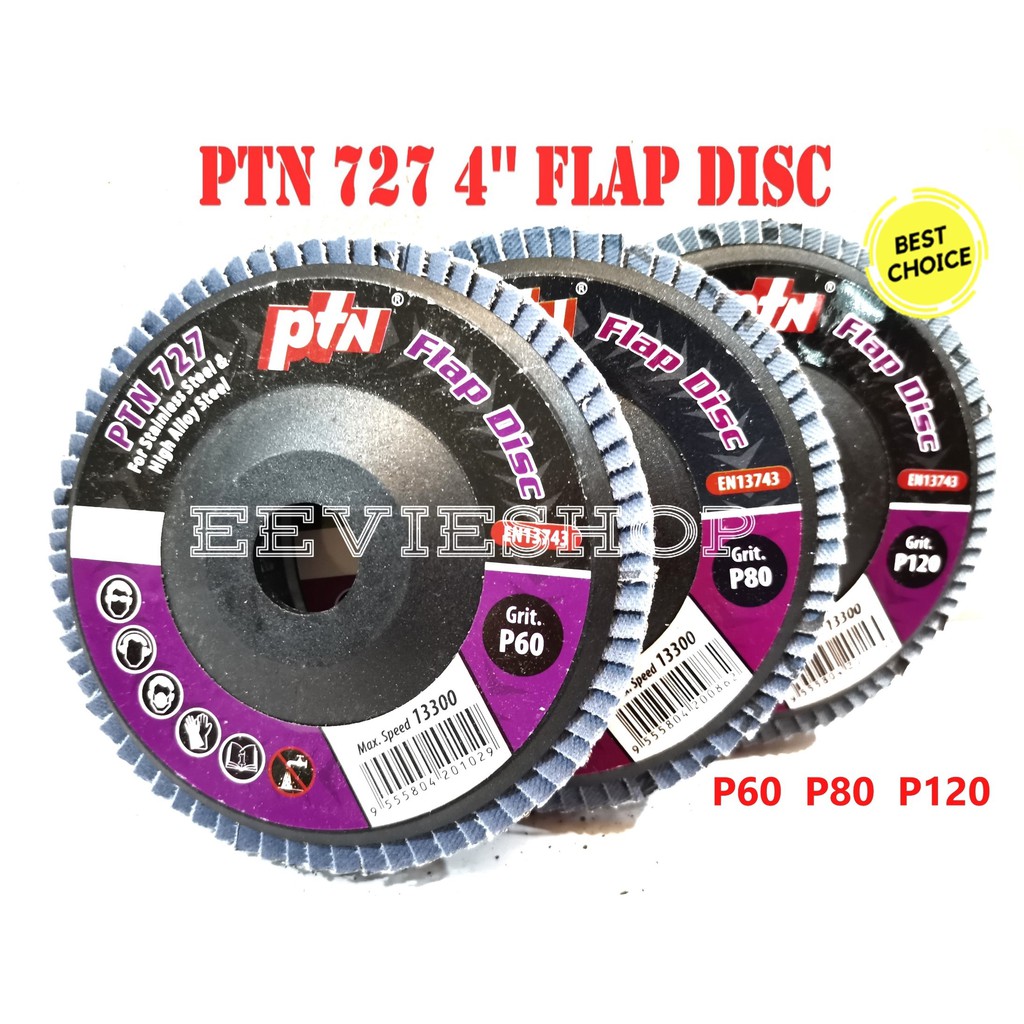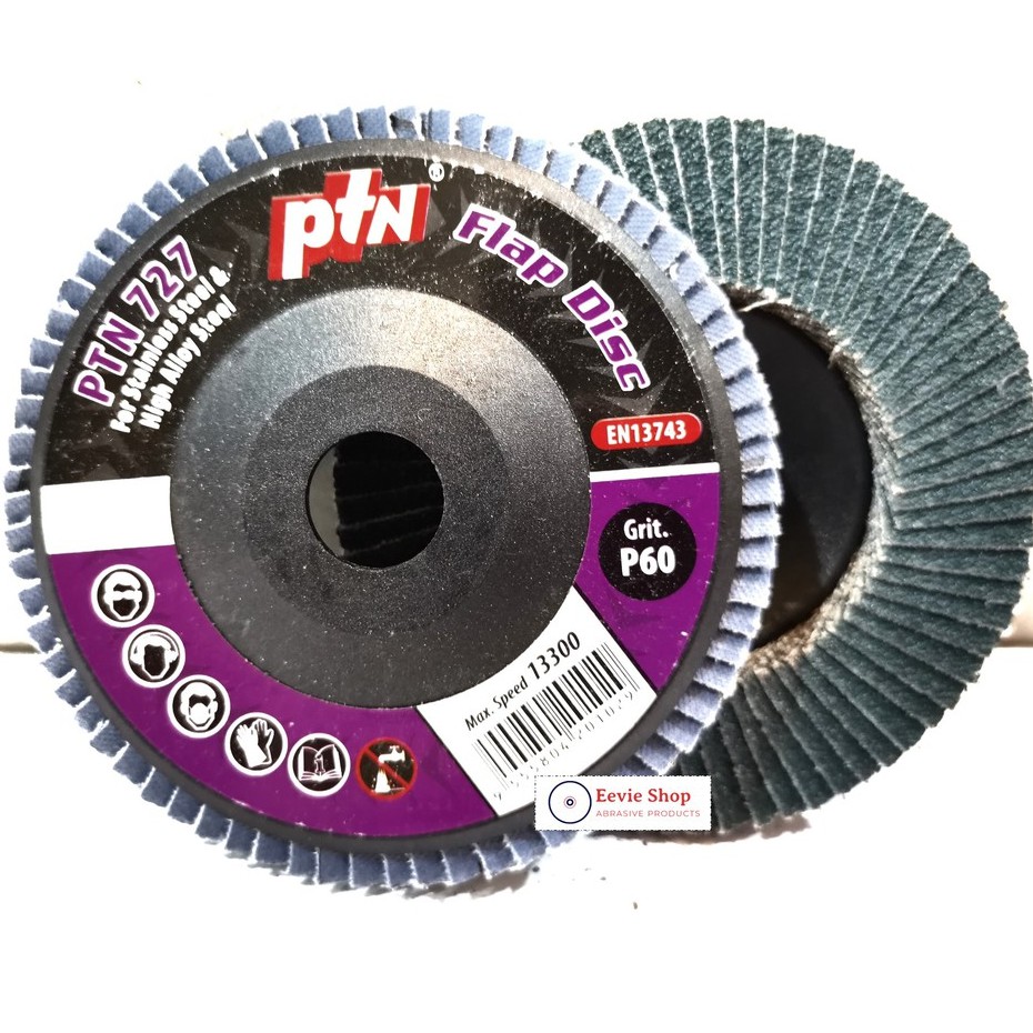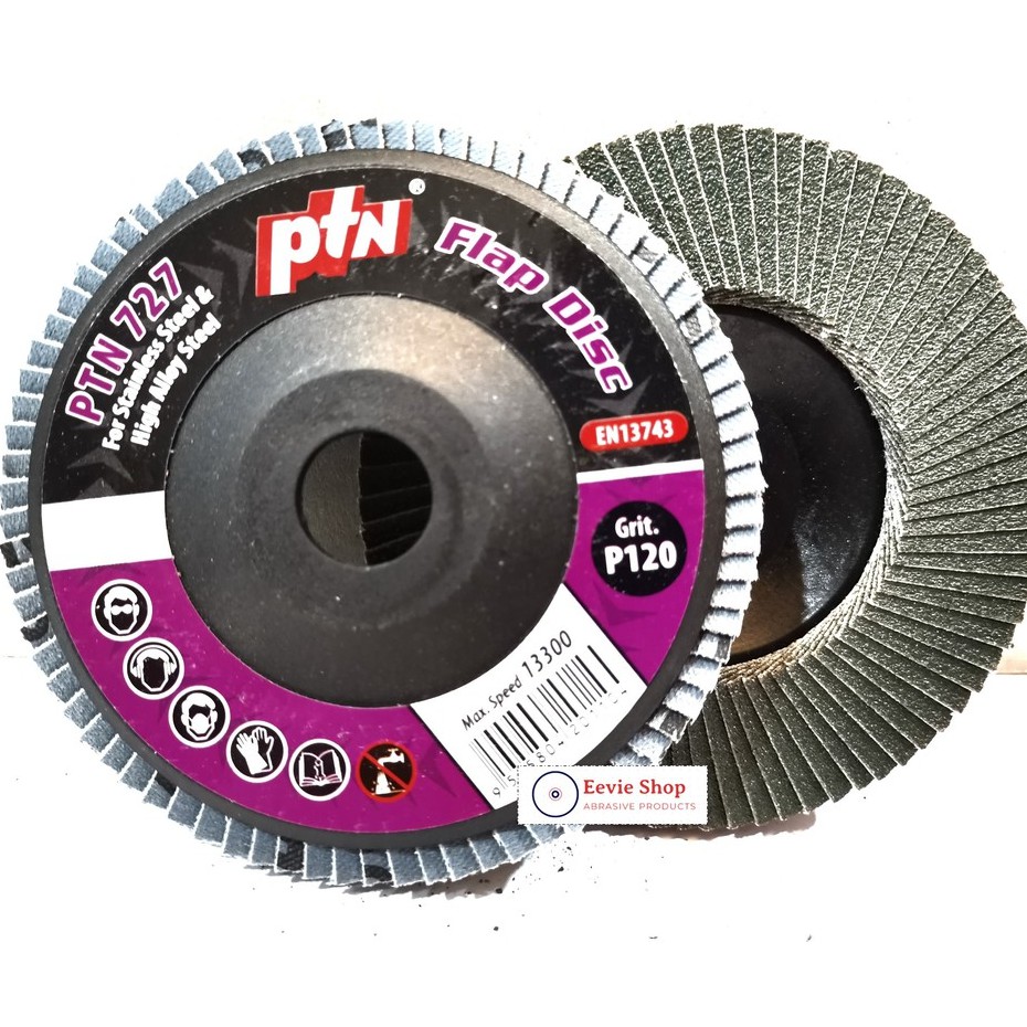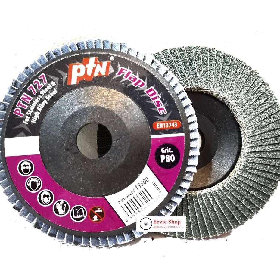 (1pcs)PTN 4" GRINDING & SANDING Flap Disc [PTN 727] 60/80/120 GRIT for stainless steel and high alloy steel/KERTAS PASIR
