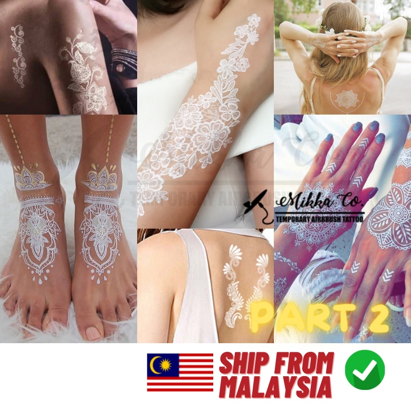 (2) Waterproof White Lace Tattoo Sticker Henna Sticker Inai Putih Temporary Tattoo Sticker Pengantin Instant Tattoo