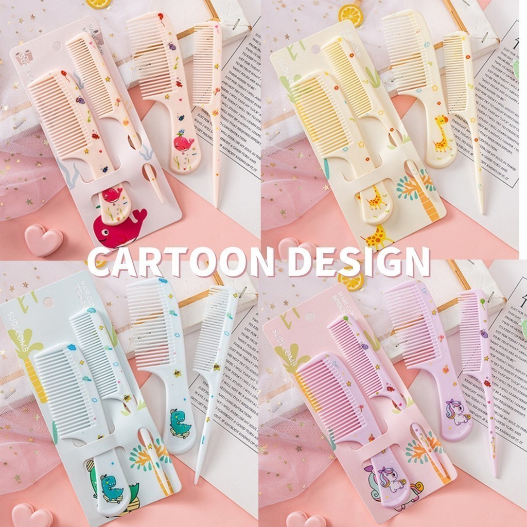 (2 PCS/SET) Cute Cartoon Hair Comb Adult Children Kids Pointed Tail Combs Fine Tooth Hairbrush Hairdressing Tools