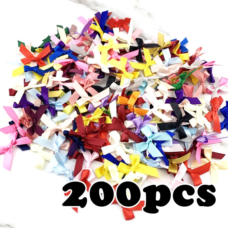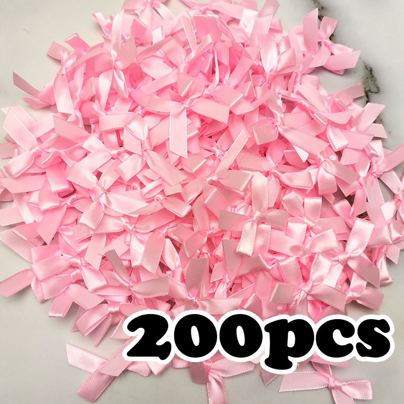 (200 pcs) fresh pink ribbon bows Small size Polyester Satin ribbon Bow Flower DIY Craft Decoration