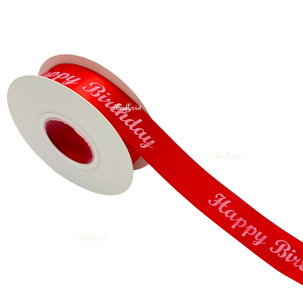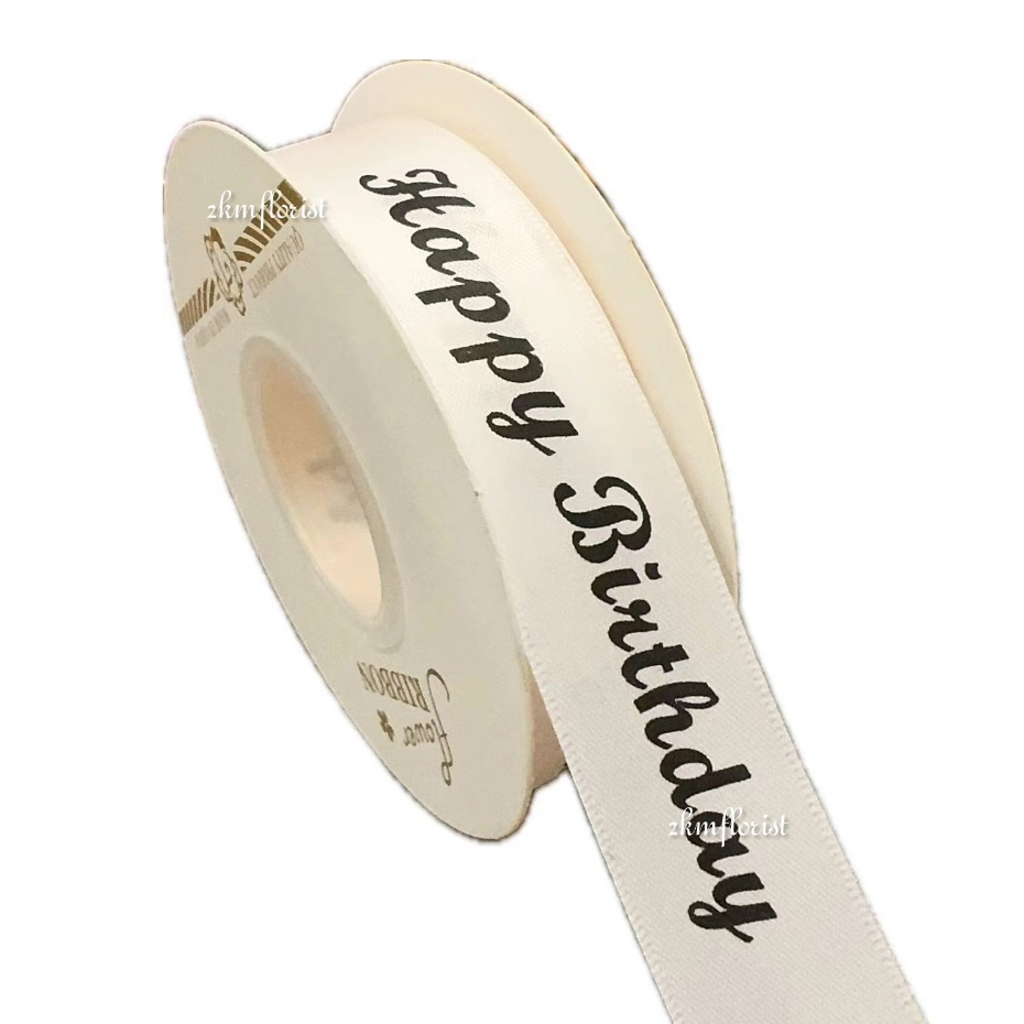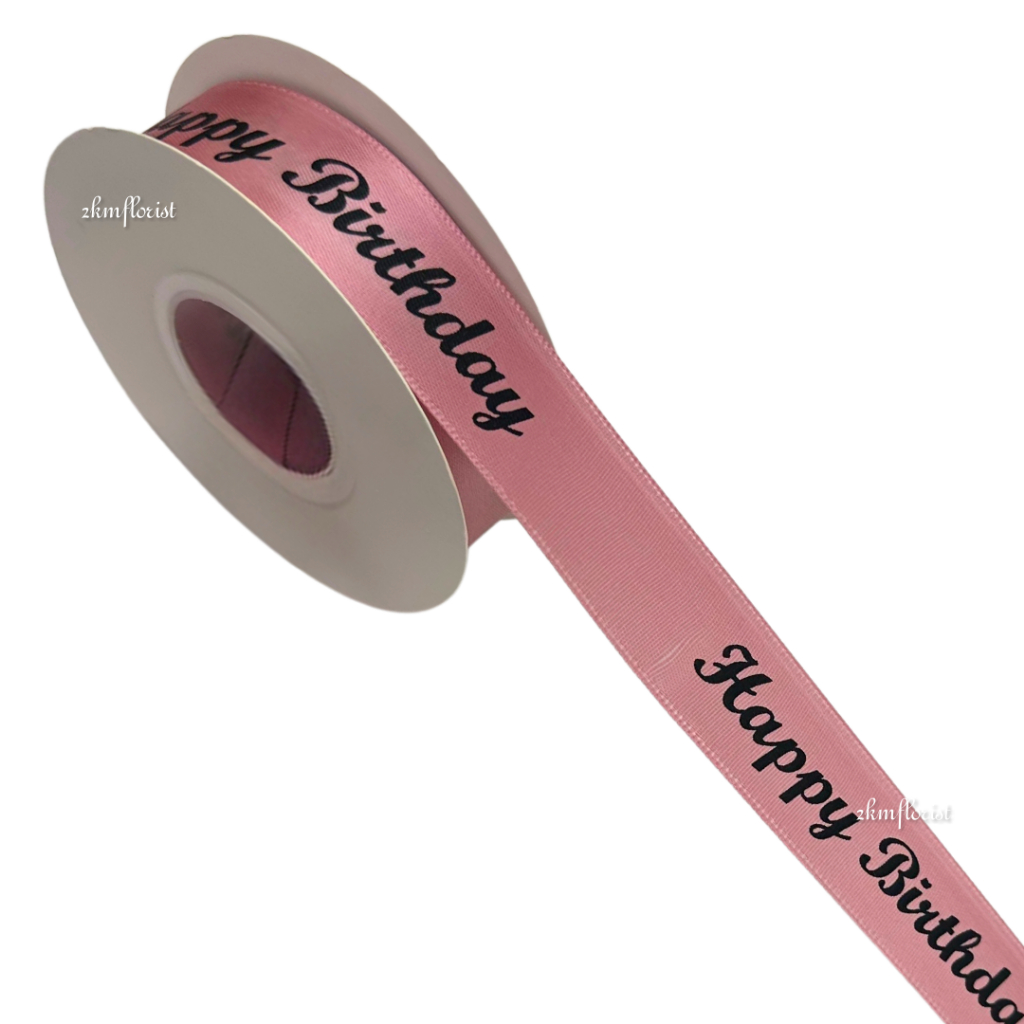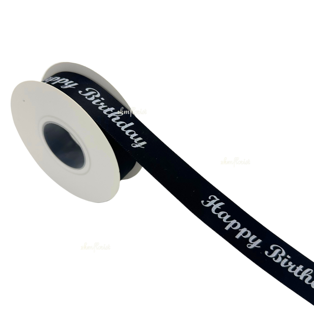 (22M) 2.5CM CLASSIC HAPPY BIRTHDAY Ribbon Reben Riben Ribben Ribon Gift Satin Flower Bouquet Bunga Hadiah Hantaran Cake