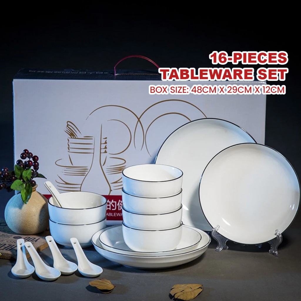 (16 pcs) MILANDO Ceramic Tableware Set Dinnerware Set White Dish Plate Gift Set Pinggang Hadiah 碗碟礼品 (Type 7)