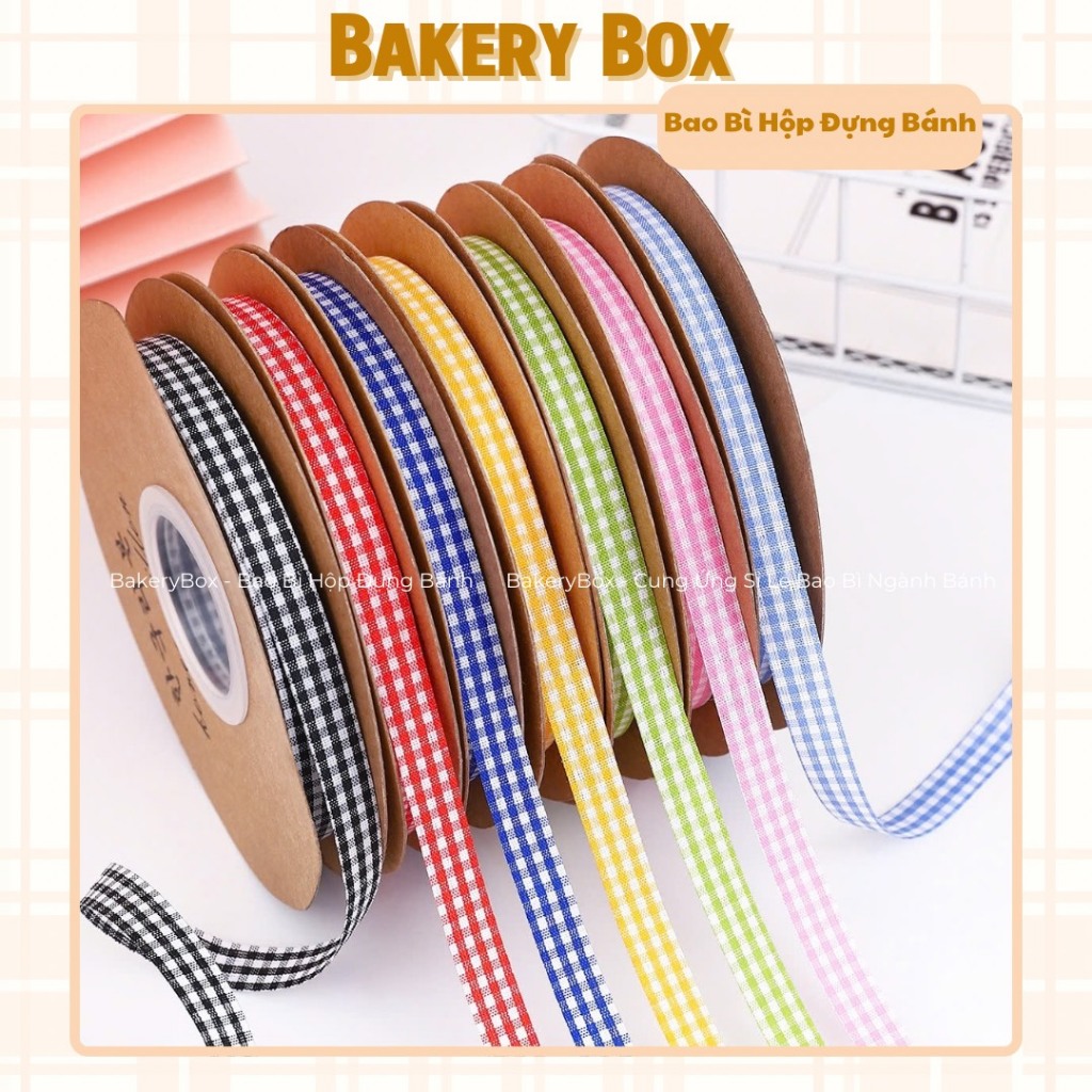 (25M Roll) 1 CM Checkered Ribbon for Gift Wrapping, Cake and Flower Boxes - BAKERY BOX