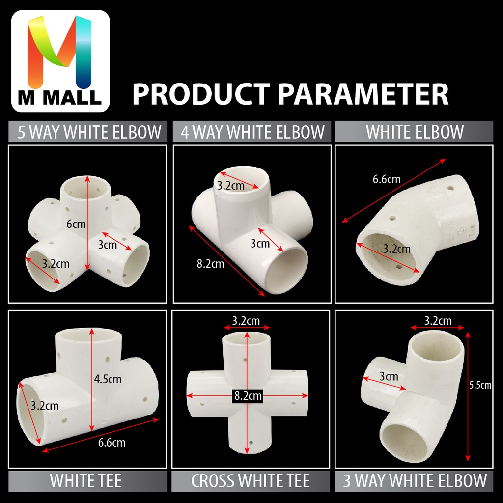(25MM) DIY PVC White Pipe Fitting Connector Joint Furniture Grade Conduit Cross 3 4 5 Way Elbow Tee Socket