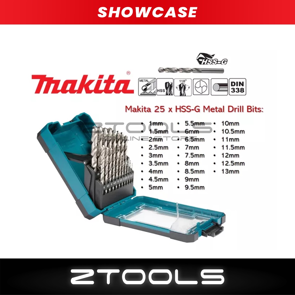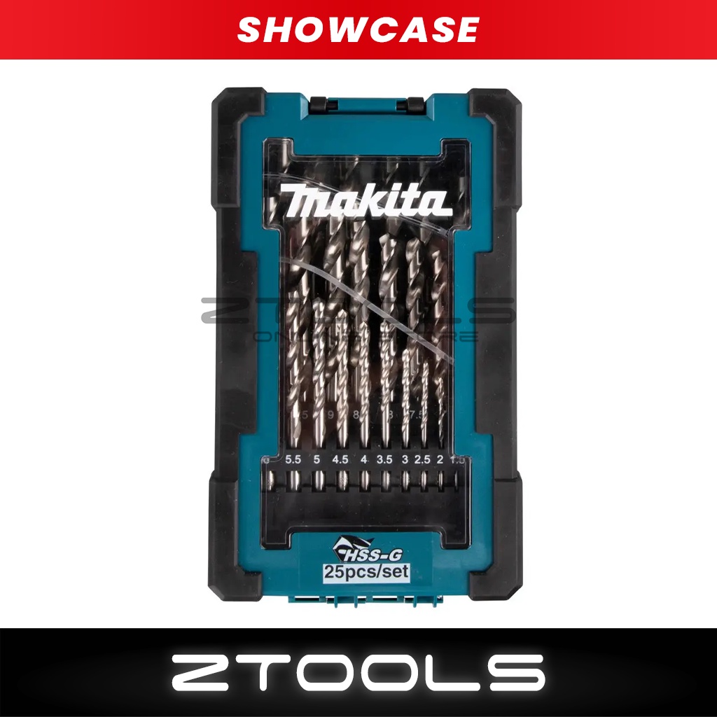 (25pcs) Makita HSS-G Metal Drill Bit Set (1 - 13mm) | D-67555 | Straight Shank | Original Product