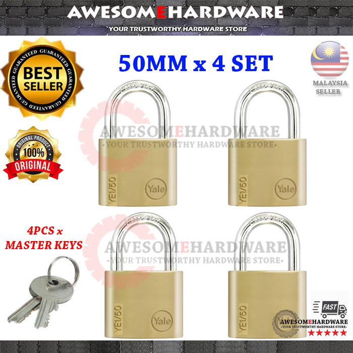(2PCS OR 4PCS) 100% ORIGINAL 40MM OR 50MM YALE ESSENTIAL YE1 KEY ALIKE MASTER KEY HARDENED STEEL BRASS PADLOCK