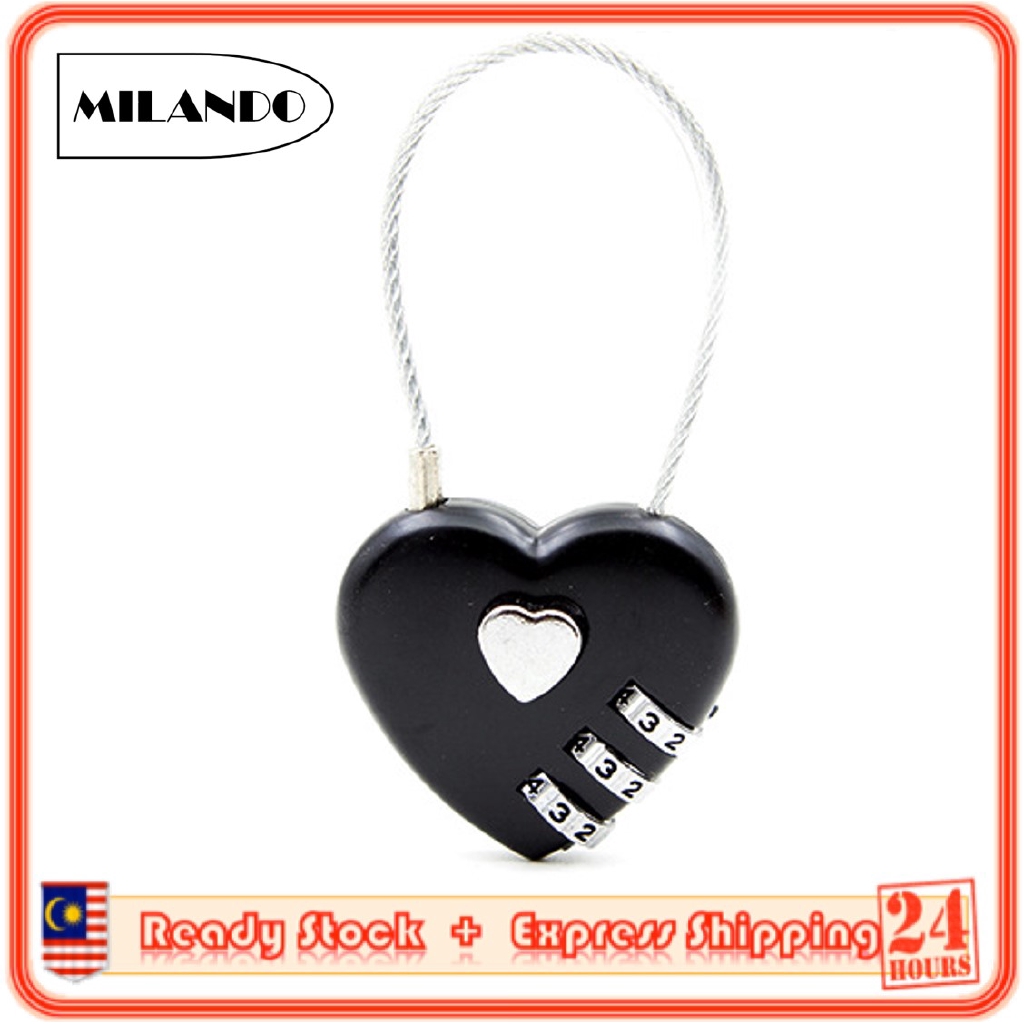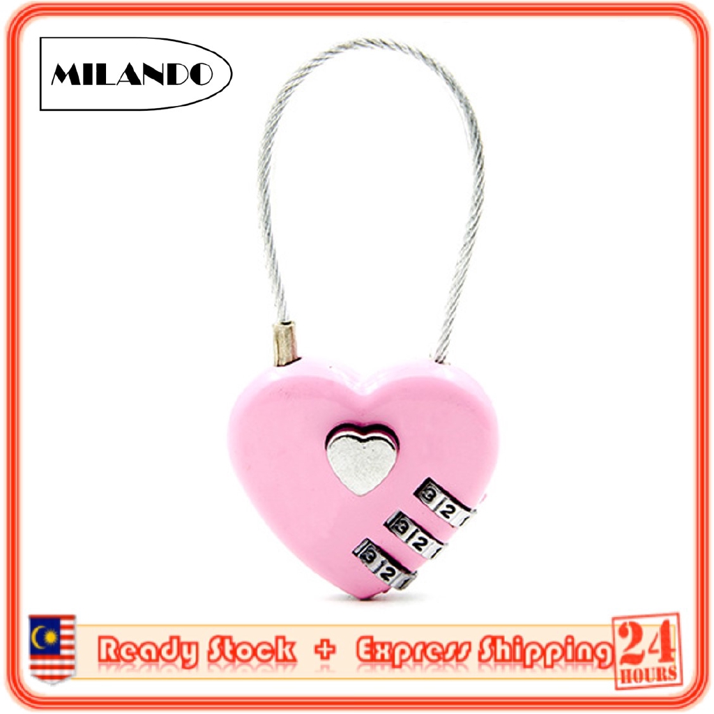 (3-Digit) MILANDO Travel Lock Combination Luggage Lock Love Heart Shape Gym Suitcase Locker Lock (Type 4)