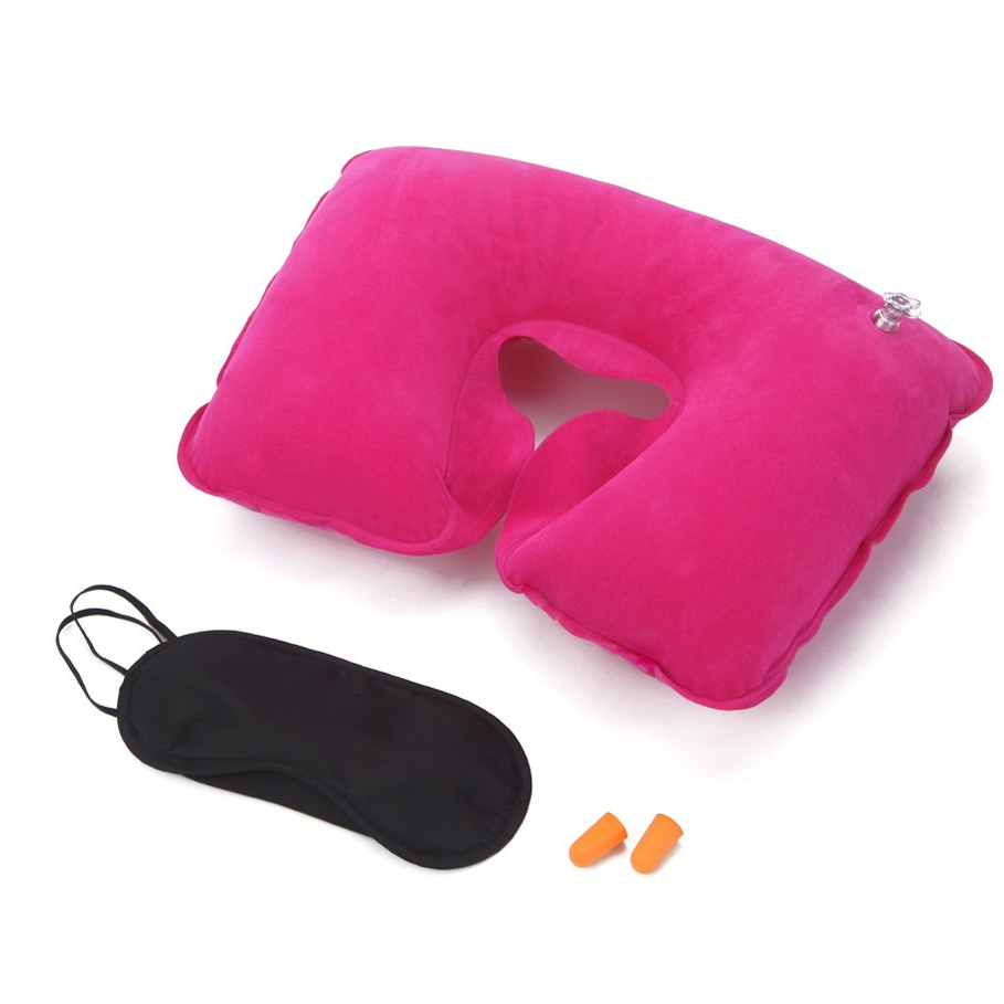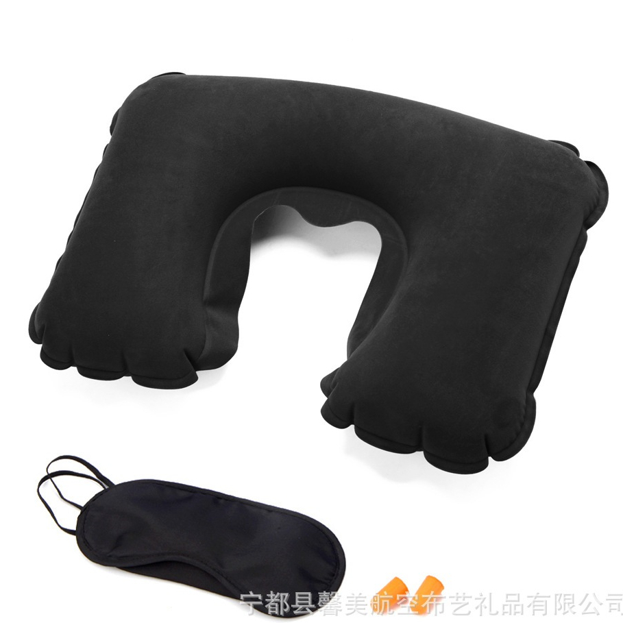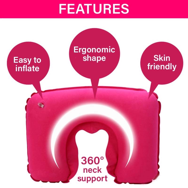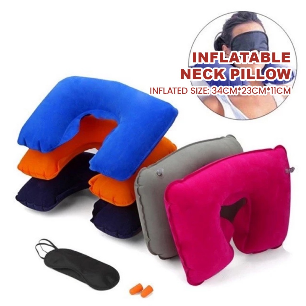 (3-Piece Set) MILANDO Inflatable Travel Pillow U shape Neck Pillow FREE Sleep Mask Ear plug Bantal Leher 旅行充气枕头 (Type 6