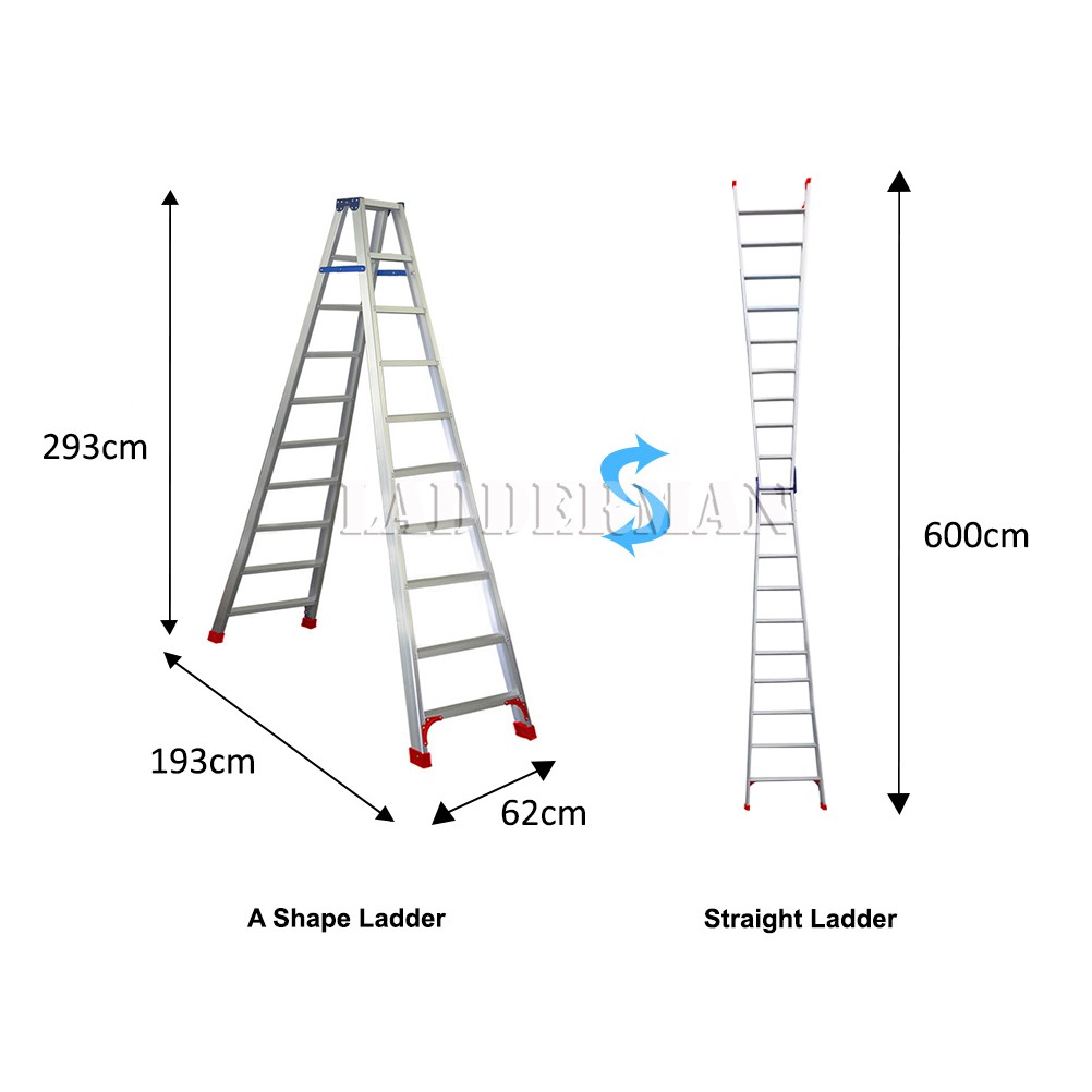 (3.0M + 3.0M) 6.0M 19 Step Multifunctional Dual Purpose Two Way Aluminium Ladder