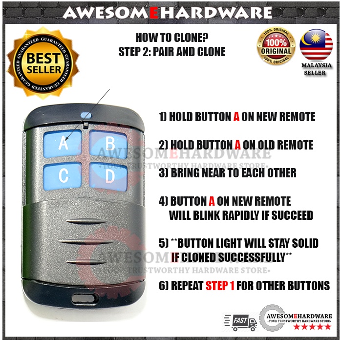 (330 MHZ, 433 MHZ) COLOURFUL 4 BUTTON AUTOGATE REMOTE CONTROL WITH BATTERY