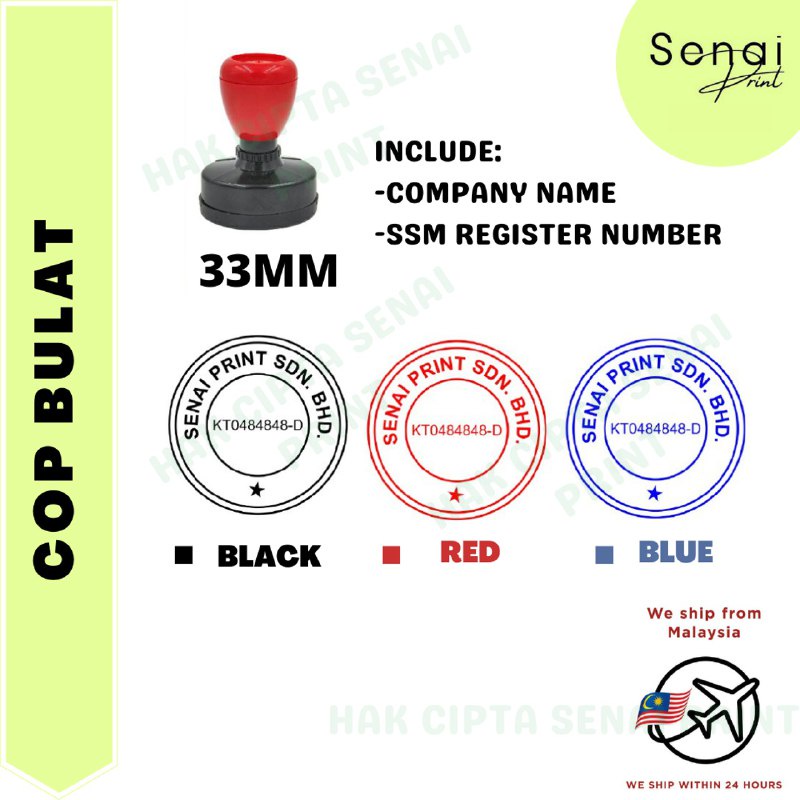 (33MM) Round Chop Rubber Stamp Chop Self Ink Flash Stamp Customized Preinked Stamp Cop Bulat Company Business