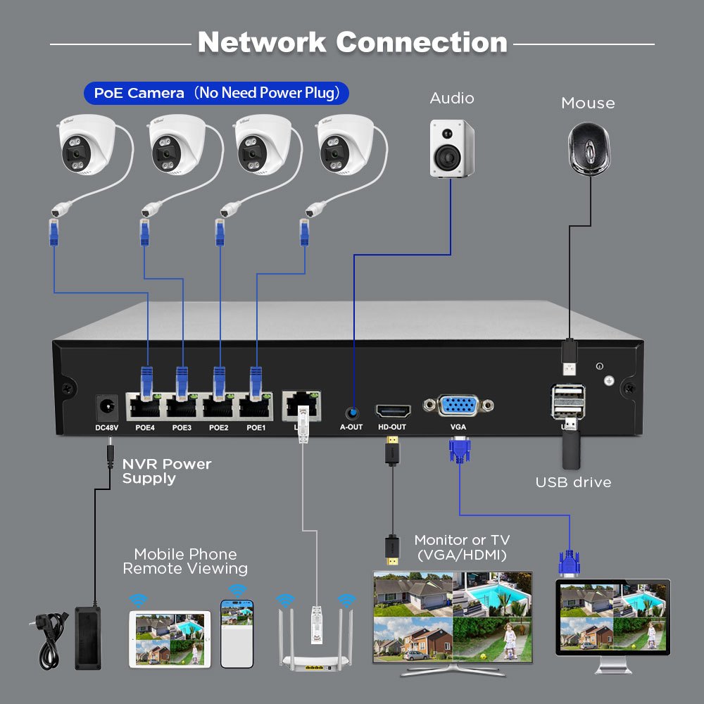 (3MP) SriHome PoE NVR (8x PoE port) + 8x PoE Dome Camera 3MP Network Video Recording CCTV System (NVS005-POE030B-8CH)
