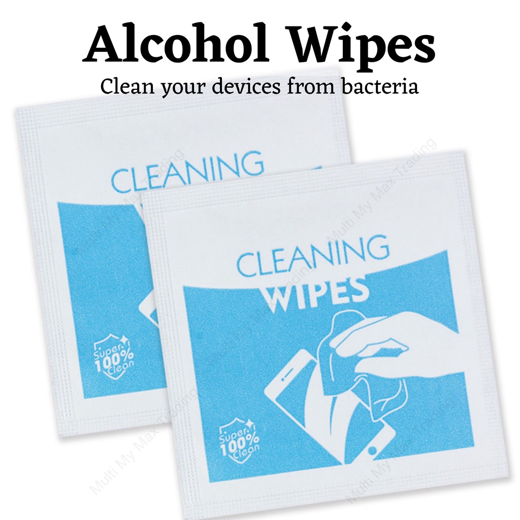 (4 IN 1) Alcohol Wipes + Soft Cloth + Dust Absorber Sticker + Block Tempered Glass Cleaning Tools