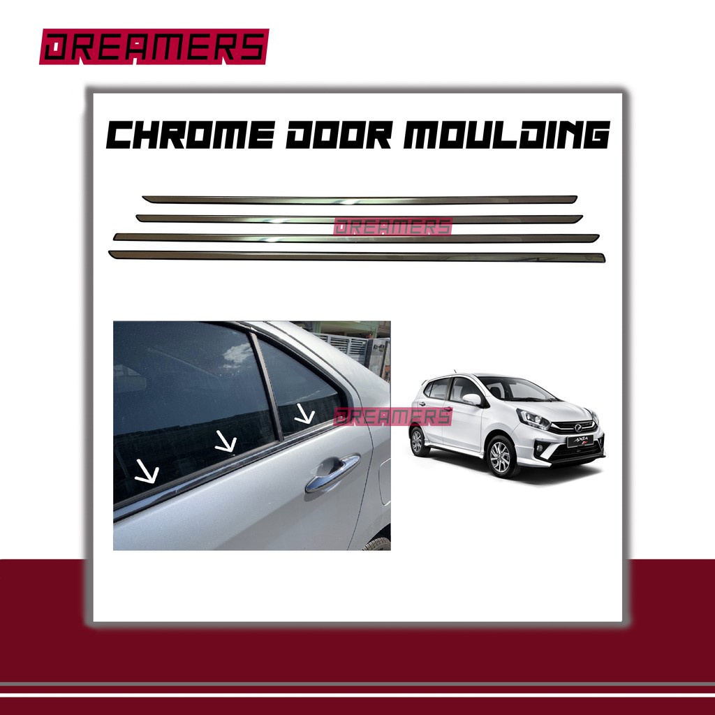 (4 Pieces/Set)PERODUA AXIA CHROME Door Belt Moulding / Window Trim Lining / Chrome Tepi Cermin Pintu