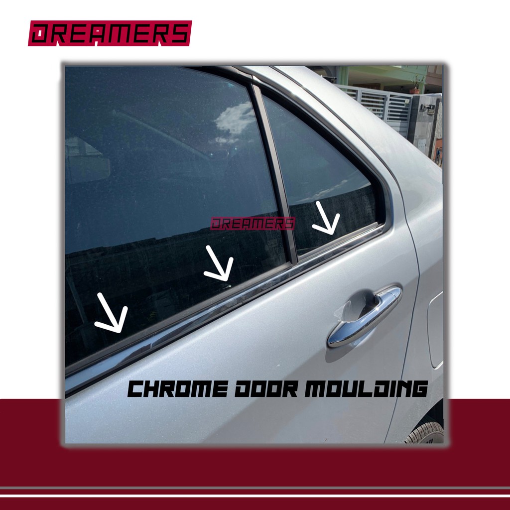 (4 Pieces/Set)PERODUA BEZZA CHROME Door Belt Moulding / Window Trim Lining/Chrome Tepi Cermin Pintu