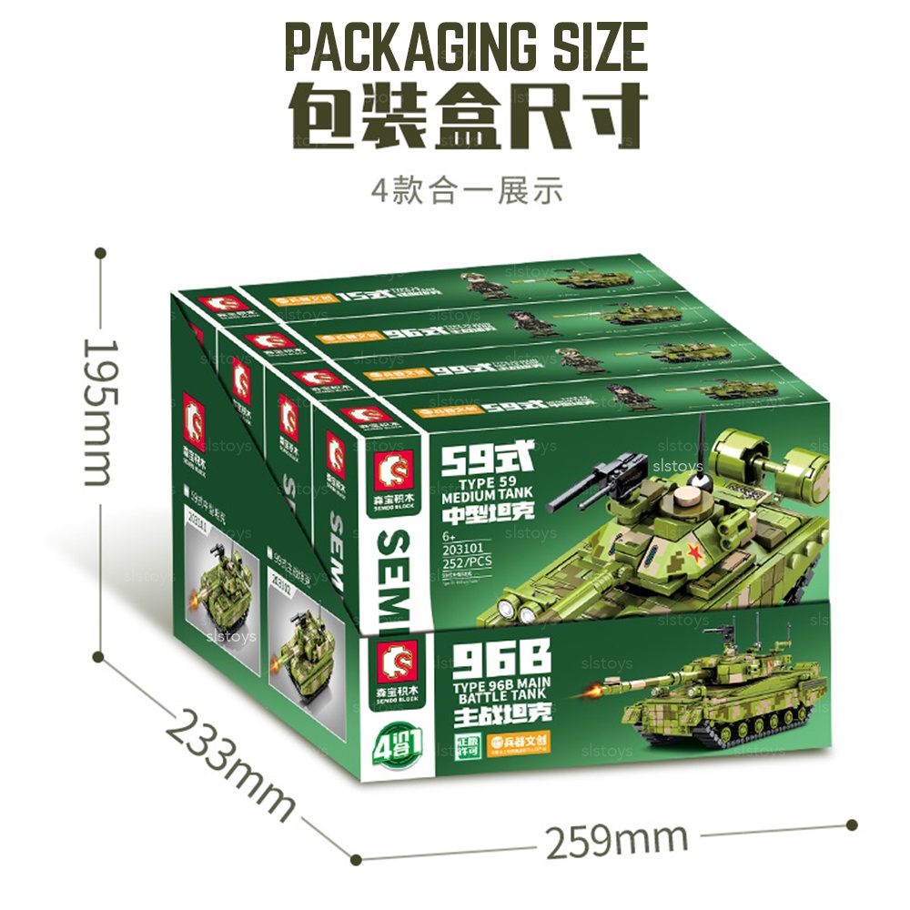 (4-in-1) Sembo Block 4 Type 96B Main Battle Tank Military Army Vehicle Building Brick Boy Toy
