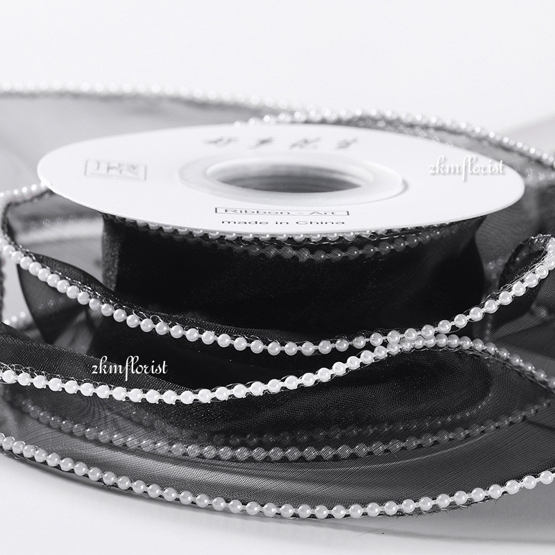 (4.5M) 4CM PEARL RIBBON Reben Riben Gift Satin fish tail Organza Flower Bouquet Roll Birthday Bunga Hadiah Hantaran Cake