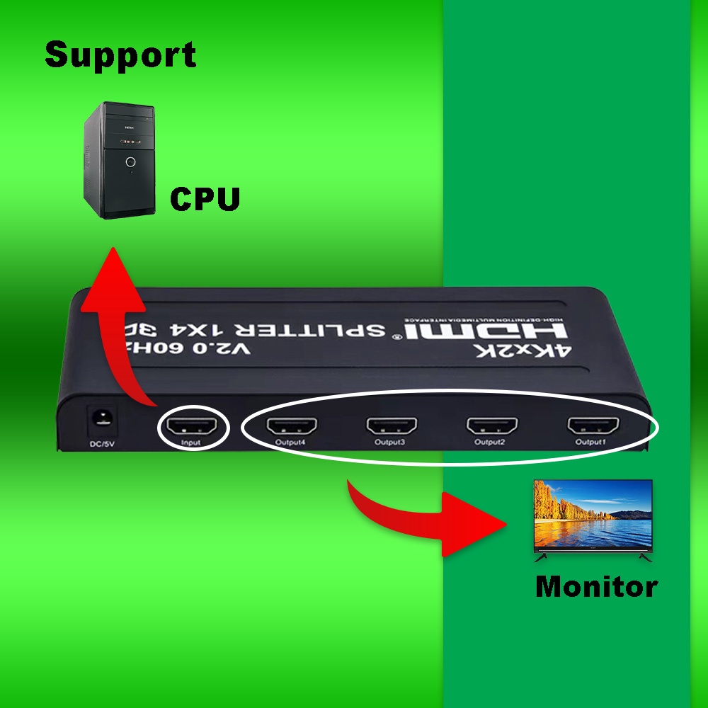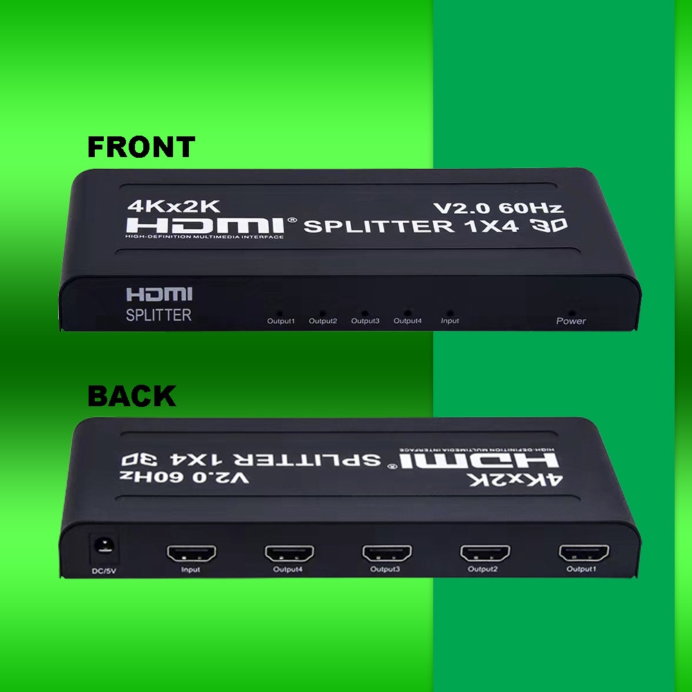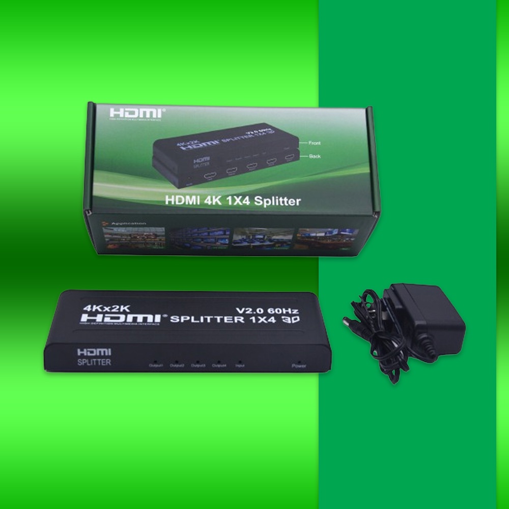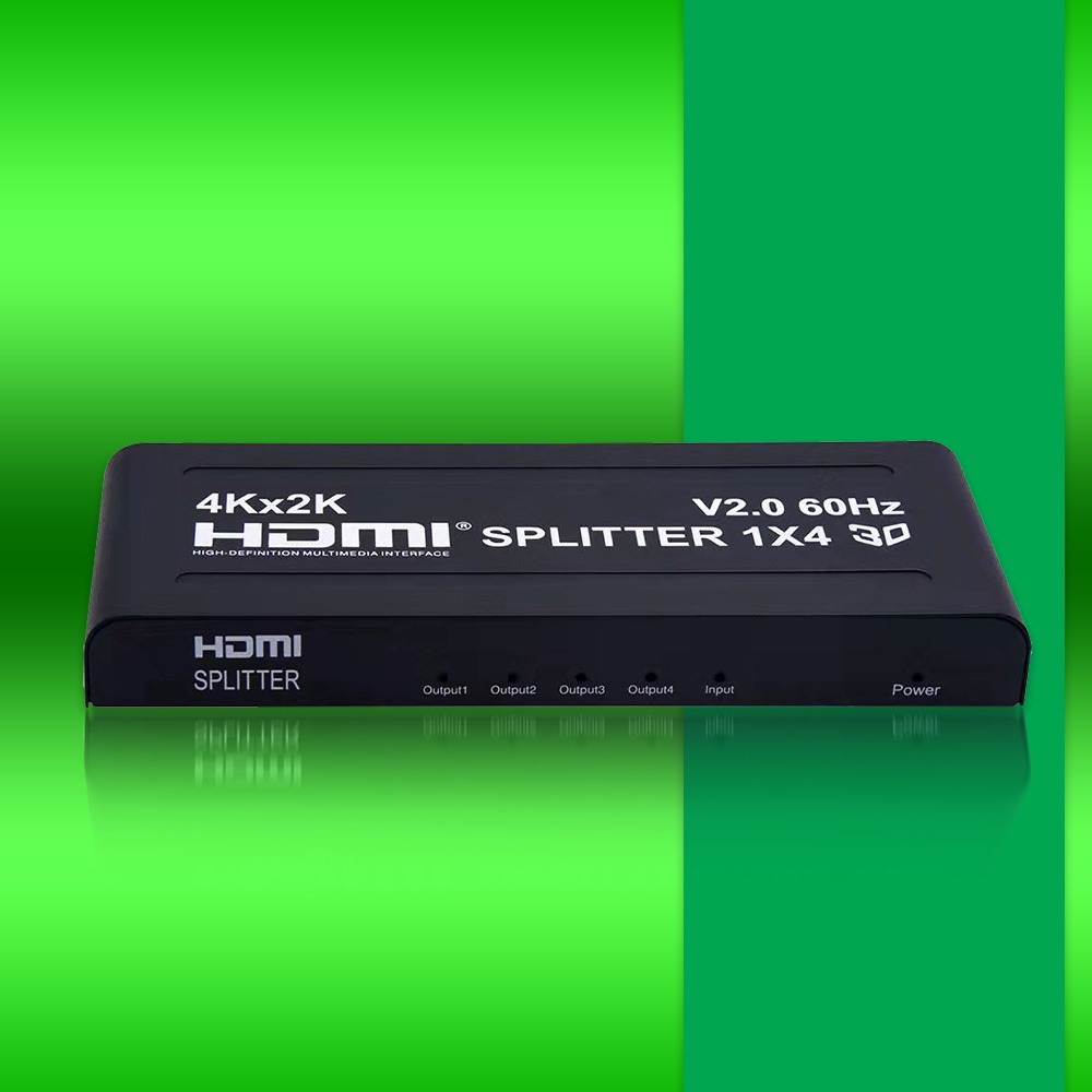 (4K 60Hz/V2.0) HDMI Splitter 1 in 4 out (1 to 4/1x4) HDMI 2.0 UHD/Full HD/4Kx2K/HDTV/3D 4 ports with Power Adaptor