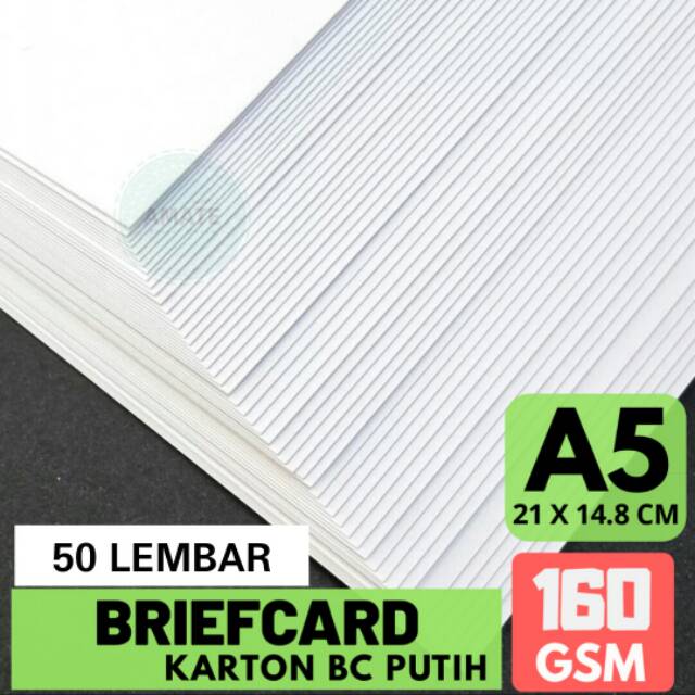 (50 Sheets) Briefcard Paper Cardboard BC White 160gr A5 / Manila Drawing Paper Sketch Paper Book