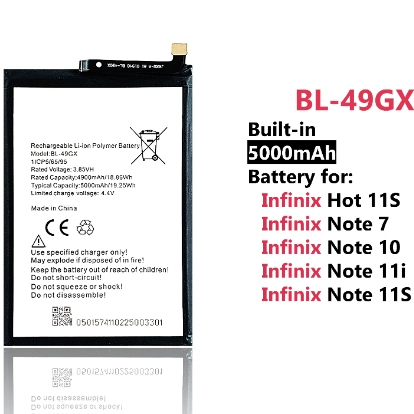 5000mAh ORI Long Lasting BL-49GX Infinix Zero X Neo Smart 5 Note 10 7 Hot 11s X6725 X657C Smart10 Battery Fast S Charger