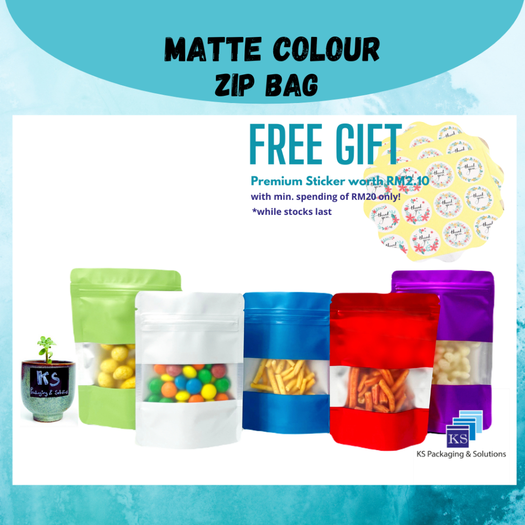 (50pcs) Big Size Matte Colour Zip Lock Bag with Window/Colour Zipper Bag/Color Zip Bag/Colour Zip Lock Aluminium