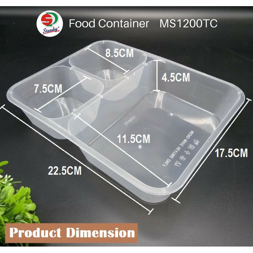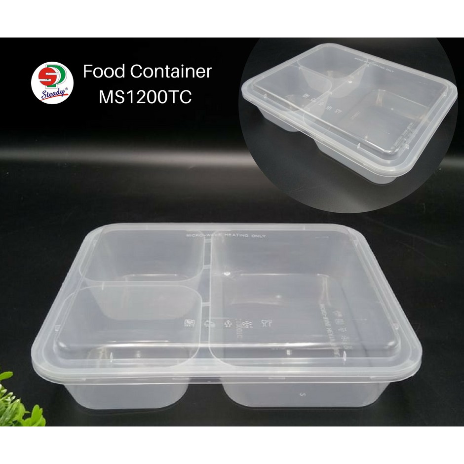 (50pcs) Plastic Container [MS1200TS] 3 Compartment Container With Lid