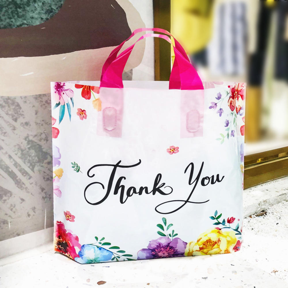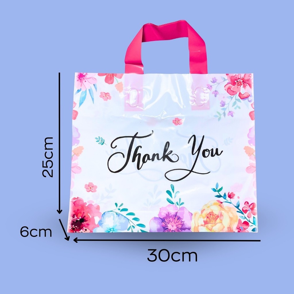(50pcs) Premium Goodies Bag(S size-30x25cm & 35x30cm) Shopping Plastic Bag With Handles Clothes Packaging Thank You Bag