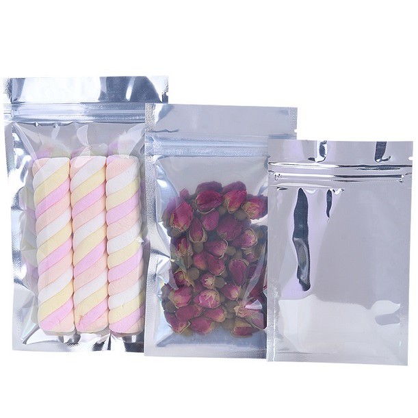 (50pcs) Semi Metalised bag zipper bag Zip lock Aluminium Air Tight Packing Bag with Clear Window Food Packaging Storage