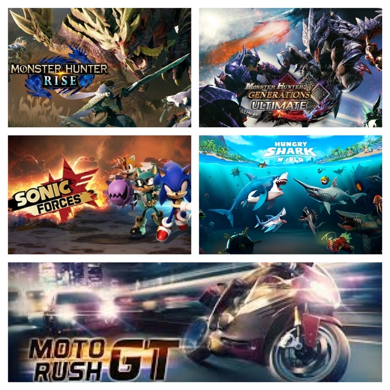 (Buy2Free1)(5in1)Nintendo Switch Digital Monster Hunter Rise,Monster Hunter GU,Sonic Force,Hungry Shark,Moto Gp