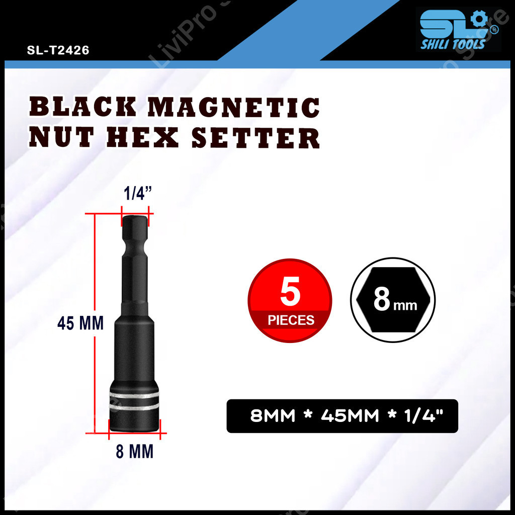 (5pcs) 8mm/10mm Hexagon Magnetic Nut Socket 1/4" Hex Shank 45mm/65mm Strong Magnet Nut Driver Kunci Screw Bumbung Atap