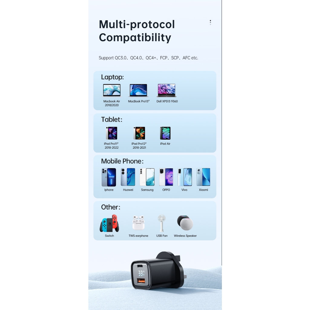 (6 Months Warranty) MCDODO 33W PD + QC Digital Display Charger + Type-C to C Cable Combo Pack