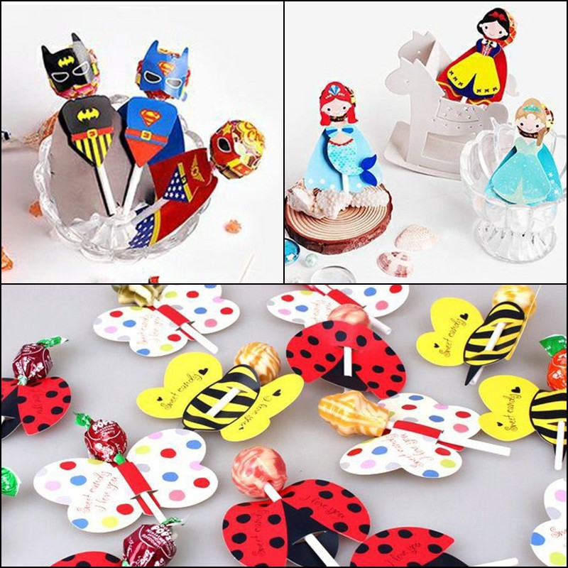 (6 Pieces / 10 Pieces) Lollipop Lolipop Holder Tag Lolly Pop Candy Birthday Party Superman Batman Frozen Unicorn