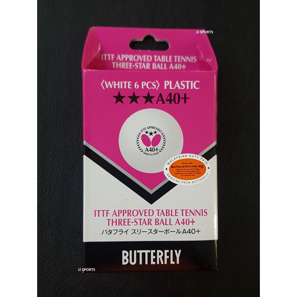 (6 in 1) Butterfly 3-Star A40+ Plastic Table Tennis Ping Pong White Ball 40mm