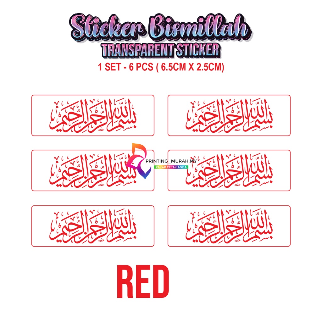 (6 pcs) Sticker Jawi Ayat Bismillah Transparent | Kalis Air | Saiz 6.5cm x 2.5cm | Sticker Bismillah Murah