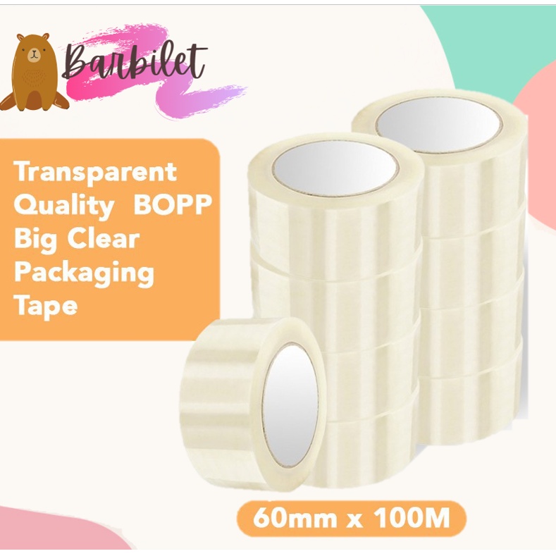 (60 mm x 100m ) Strong Transparent Quality Clear Packing Tape Besar Packaging Tools