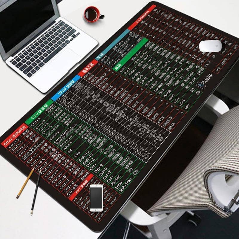 (60cm*30cm*0.2cm) Mouse Pad Mousepad Shortcut Key Microsoft Office Pro Powerpoint Excel Gaming Shortcut Key