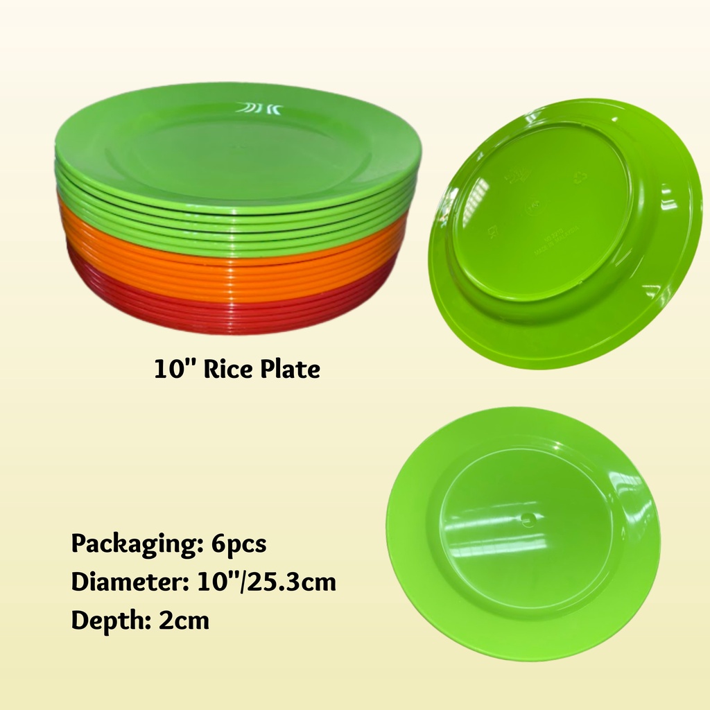 (6pcs) Food Grade AS Plastic Bowls & Plates (Red/Orange/Green) Pinggan Mangkuk Plastik Warna Merah/Oren/Hijau